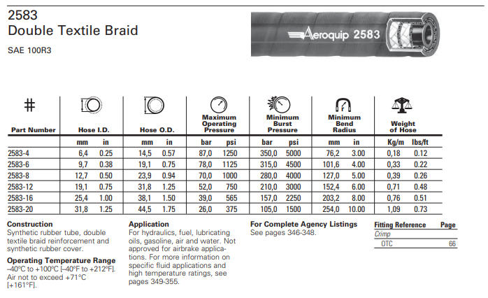Para a hidráulica, o combustível, óleos lubrificando, gasolina, ar e água. Não aprovado para aplicações do freio a ar comprimido.